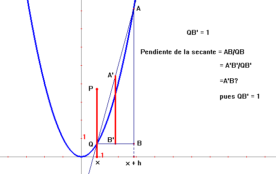 El cociente AB/QB representa la pendiente de la secante AQ