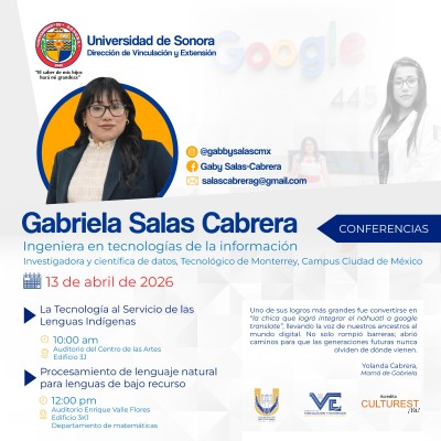 La Universidad de Sonora invita al público en general a las conferencias impartidas por la maestra Gabriela Salas Cabrera.