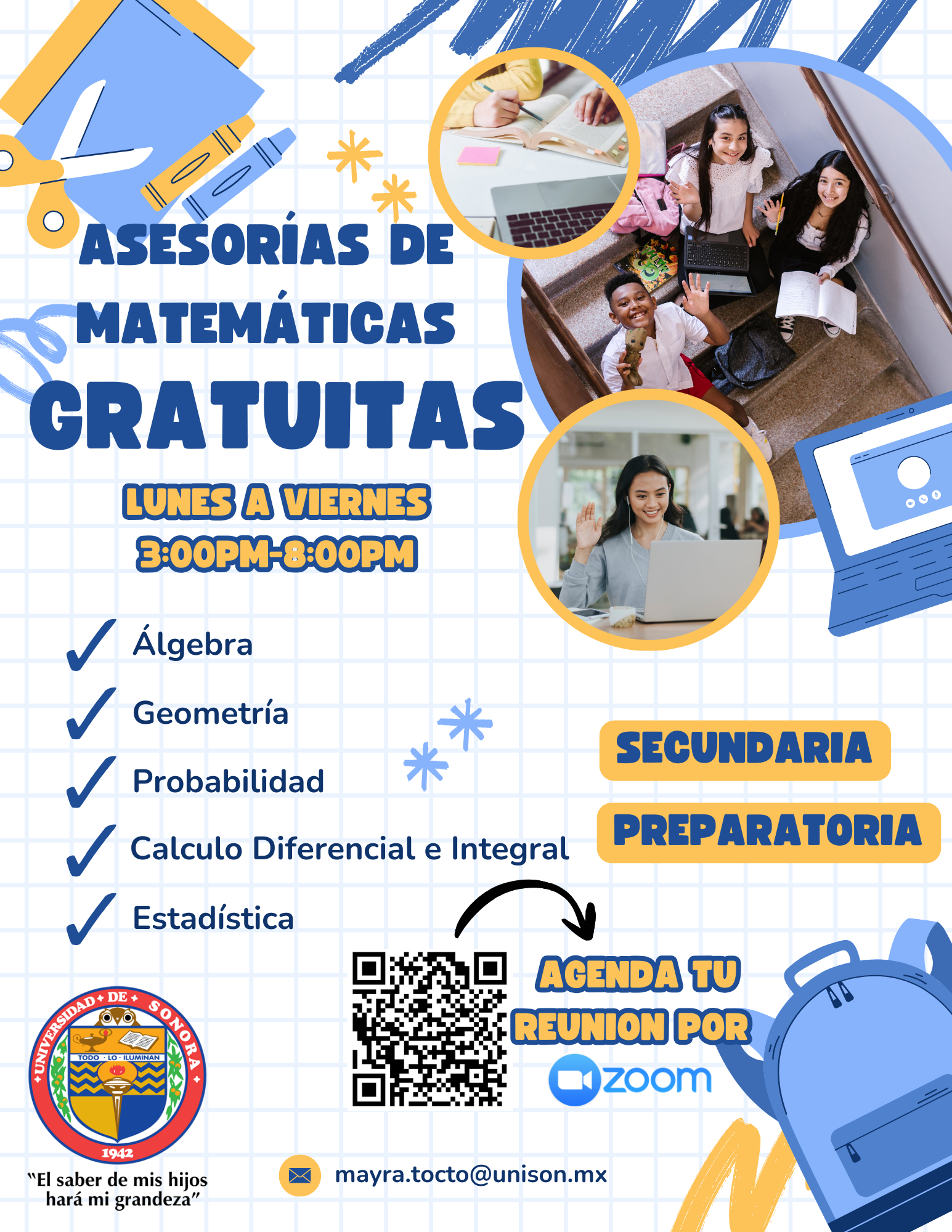La Universidad de Sonora pone a disposición de estudiantes de secundaria y preparatoria asesorías virtuales de Matemáticas a través de Zoom.