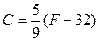 en donde C es la temperatura en grados Celsius (o centígrados) y F es