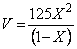 donde la constante de equilibrio K = 1/125. Indicar gráficamente la relación entre V y X, para los valores de X comprendidos entre 0 y 1. Hallar V cuando x=0.32 mol.